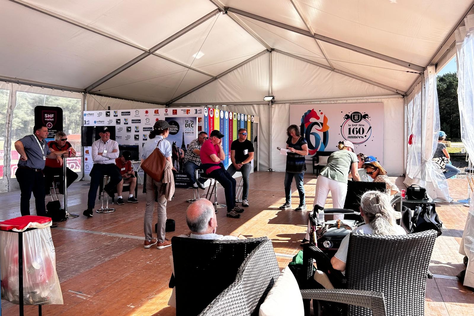 Comme chaque année, l'ANAA était présente à Fontainebleau pour représenter et promouvoir la race lors de l'incontournable Championnat des Jeunes Chevaux de Saut d'Obstacle. Nous avons été prévenus par la SHF qu'une délégation irlandaise s'y trouvait et qu'il était possible de faire une intervention au sujet de l'Anglo-Arabe en France. C'est donc devant une trentaine d'éleveurs irlandais que nous avons exposé les spécificités du studbook AA, ceux-ci se sont montré très intéressés en particulier par l'intérêt de l'apport de sang anglo-arabe en élevage et ont posé des questions tout à fait pertinentes. Nous leur avons laissé de la documentation et des contacts ont été pris pour proposer un éventuel voyage à l'occasion des finales AA de la semaine Pompadour dans les années à venir. Affaire à suivre!